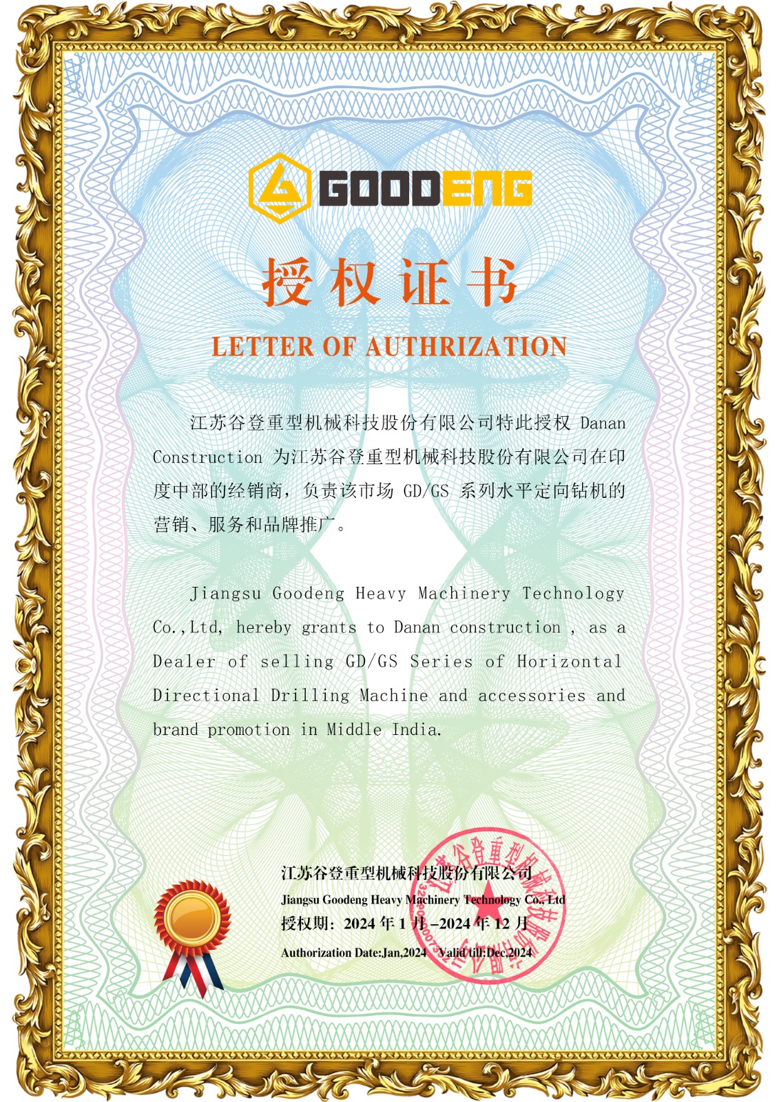 We are proud to be recognized as the exclusive certified dealer for Goodeng HDD Machines. This prestigious partnership grants our clients access to top-tier, innovative HDD equipment renowned for its reliability and performance. With our expertise and Goodeng's cutting-edge technology, we provide unparalleled quality and service to meet all your project needs.